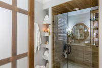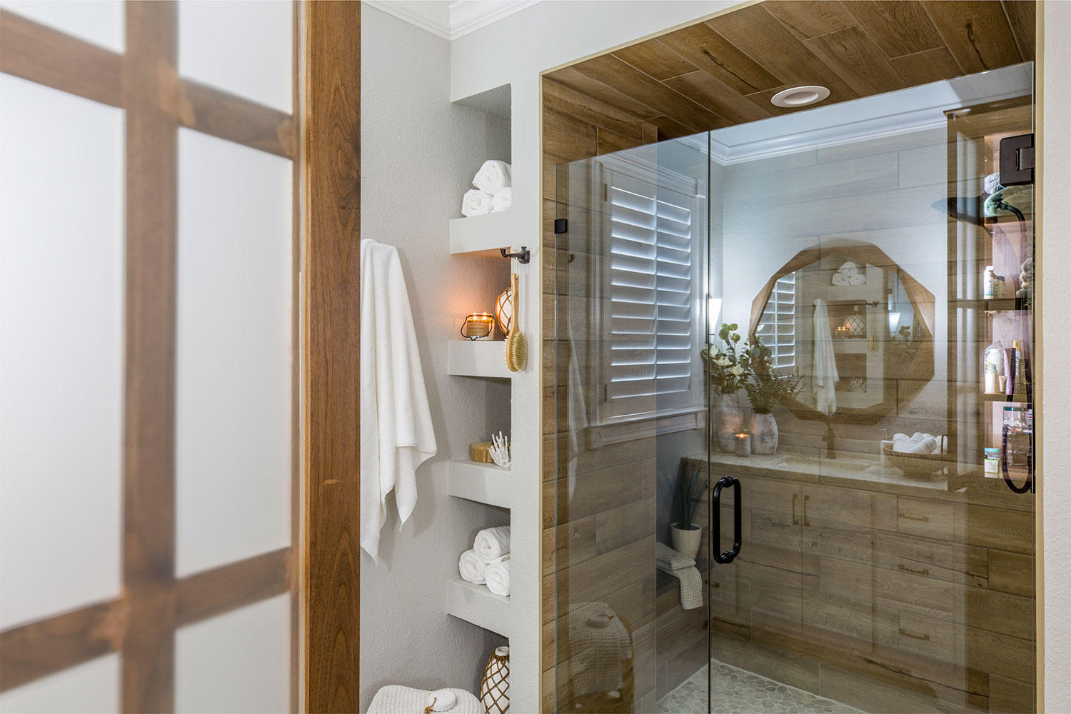 Designers and homeowners carefully select the materials, finishes, and hardware for their bathroom remodeling projects. Unfortunately, the shower glass often acts as a mirror—reflecting the oppostite side of the room or adjacent windows, which can be detrimental to portfolio and marketing images. As a Dallas-Fort Worth interior photographer, I remove these visual issues to create clean, high-impact images that allow the beauty of the materials to be shown the way they were intended.