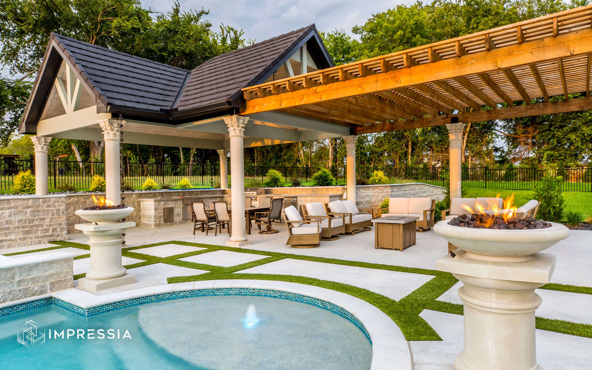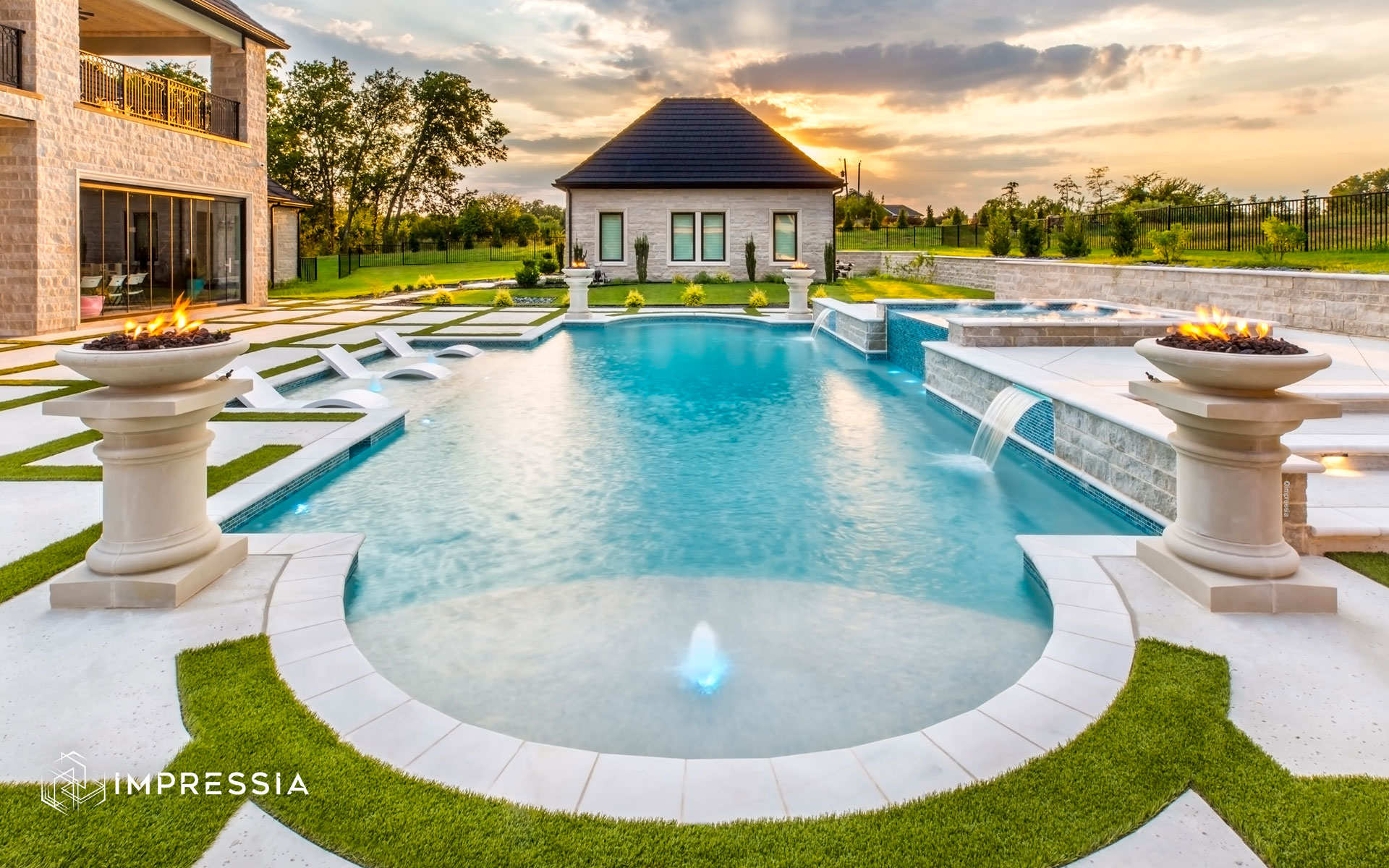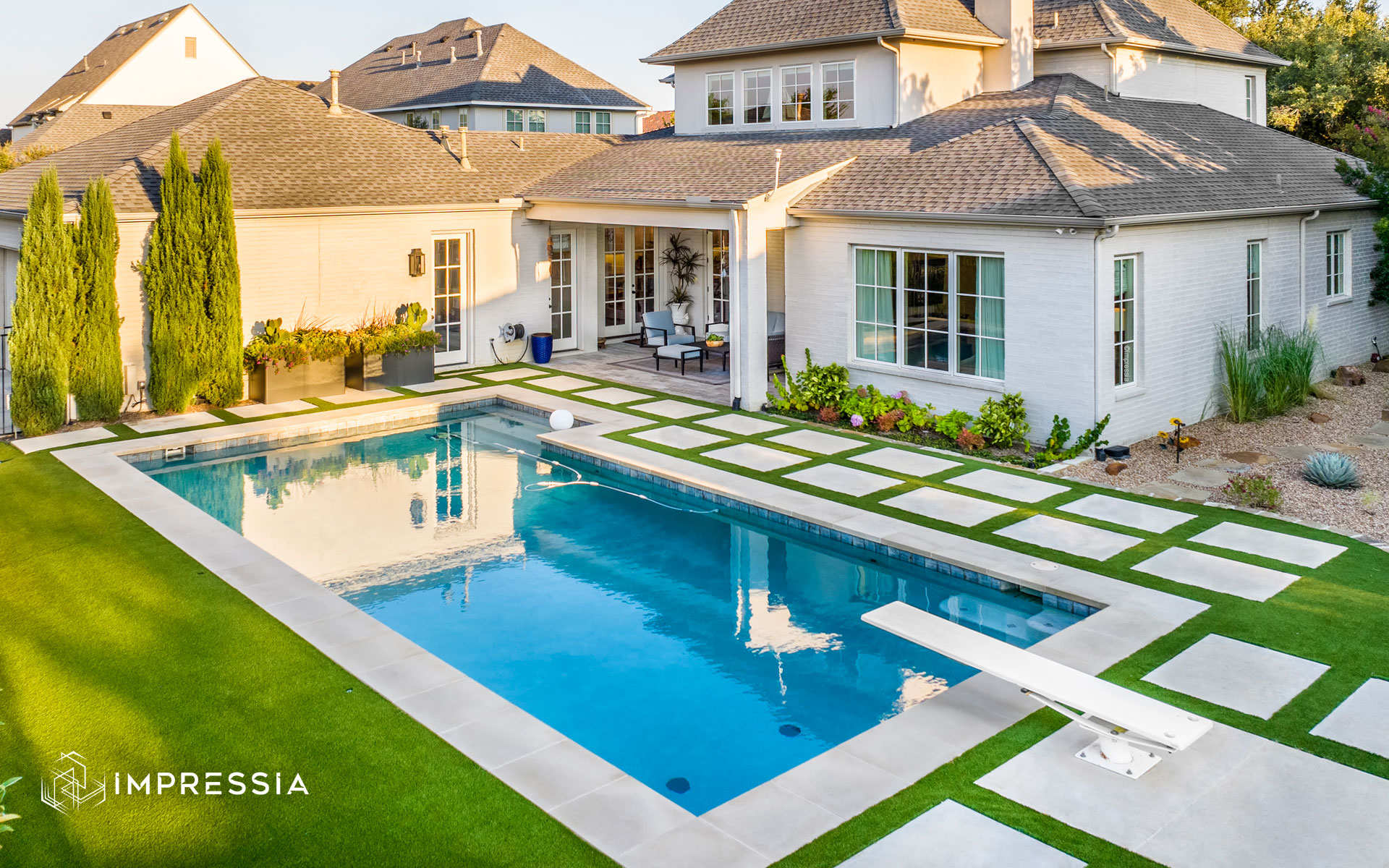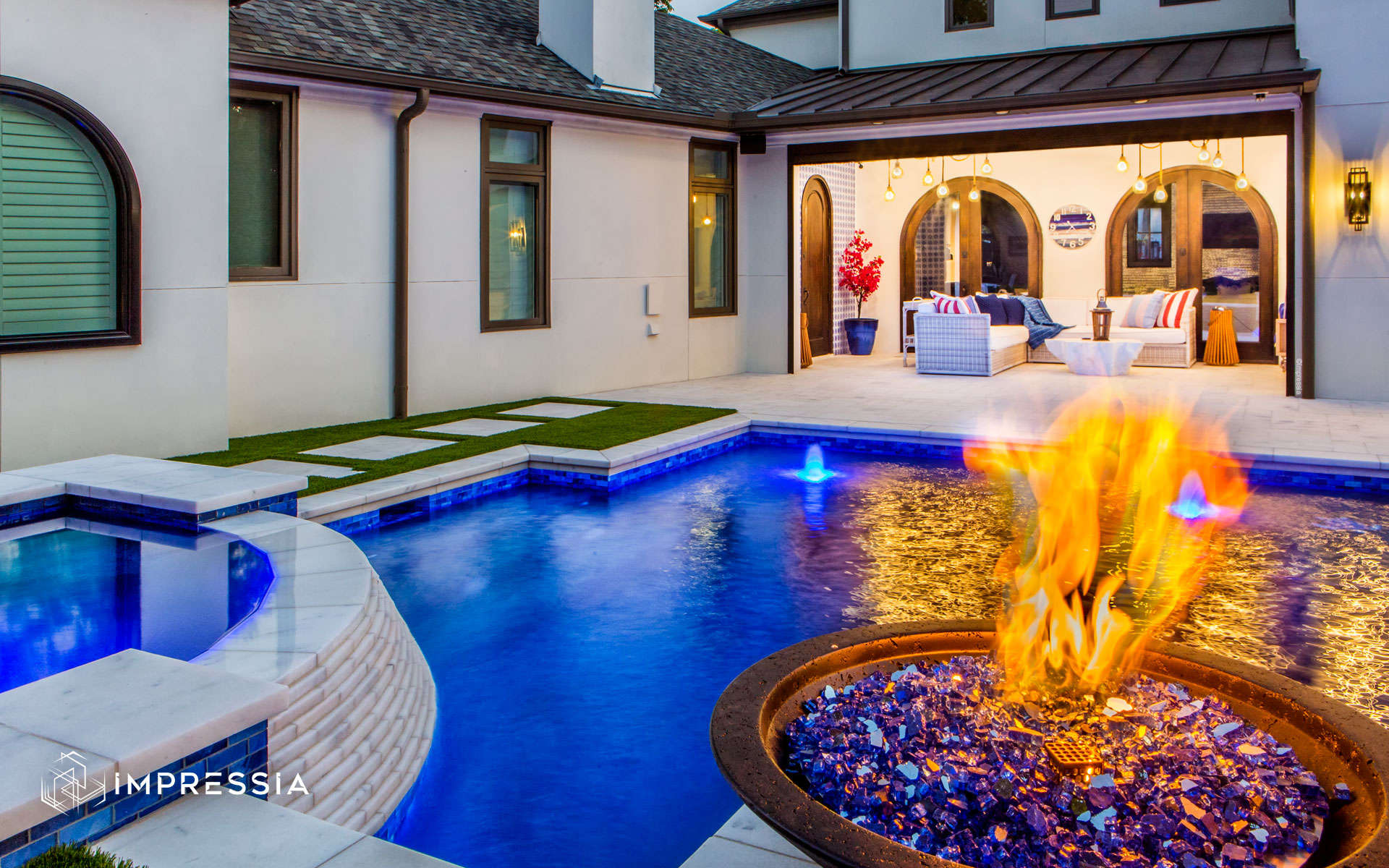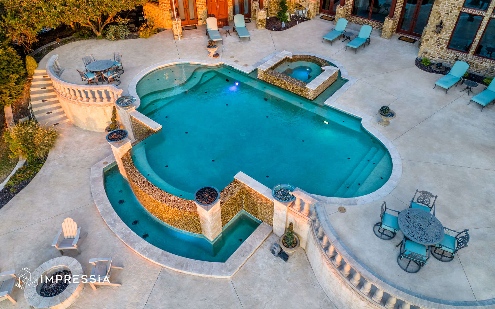 View more residential photography or contact Impressia to work with a trusted Dallas–Fort Worth architectural photographer documenting elegant outdoor living spaces and custom pool design throughout Texas.